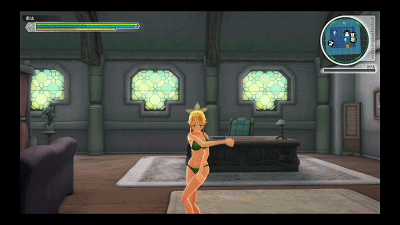 角色造型尚在可接受范围之内,建模上对于原作还原度很高,而且动作丰富,眨眼、乳摇、惯性动作、甚至时不时动一下的耳朵这些动作细节把握的很到位,但是在角色行动上还是有一些僵硬,很不自然。