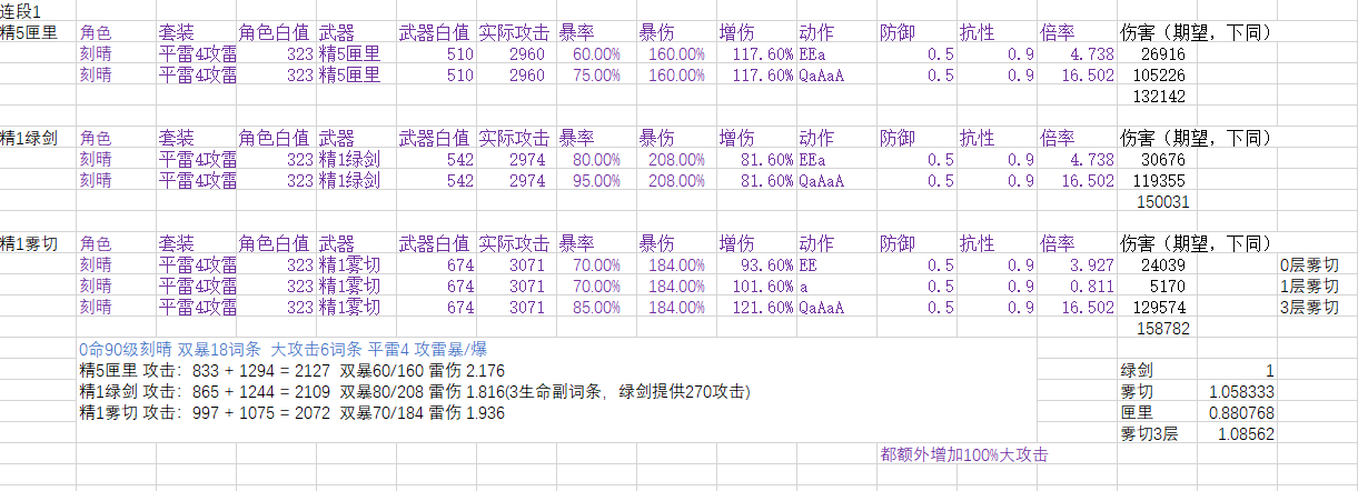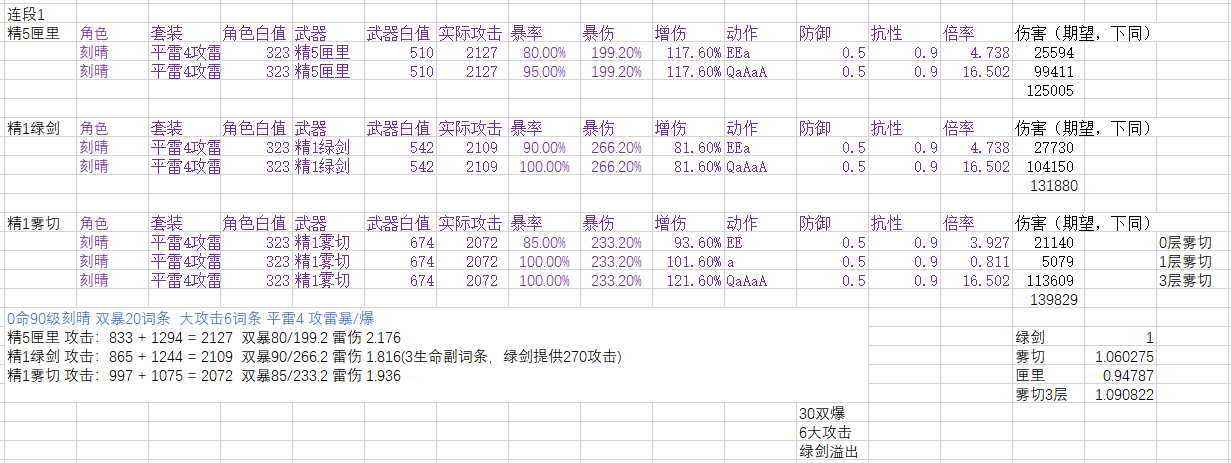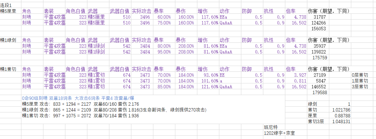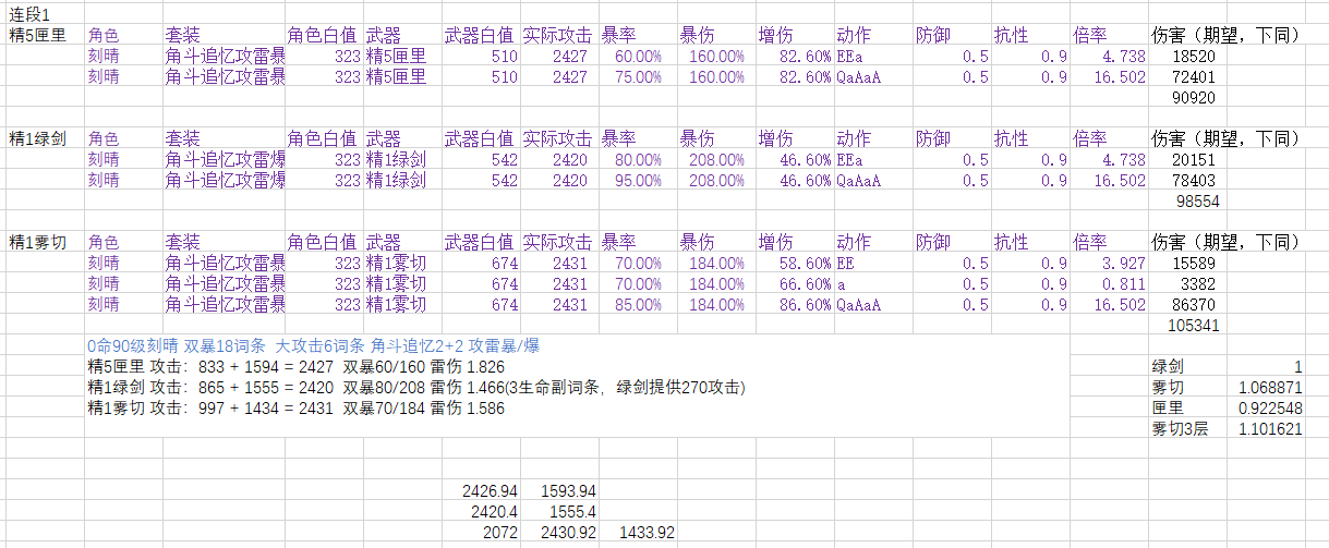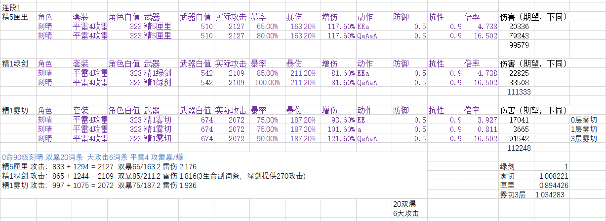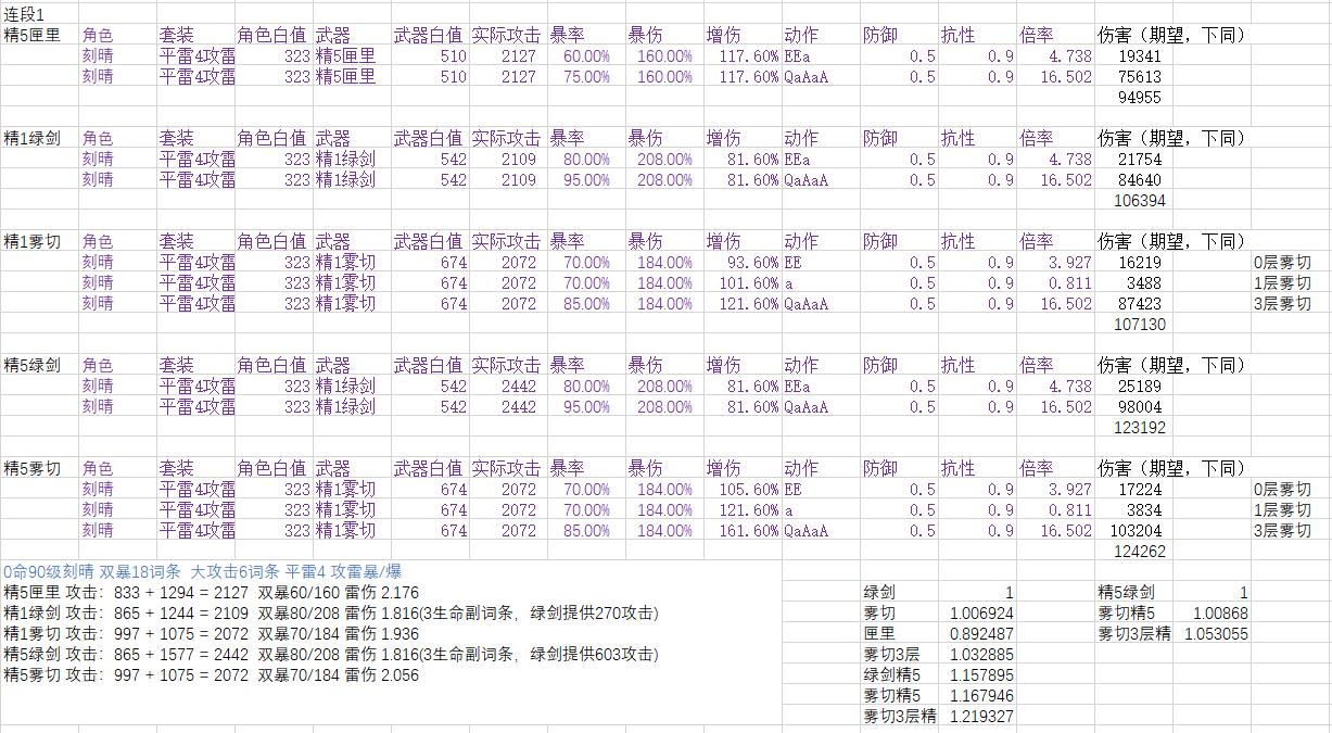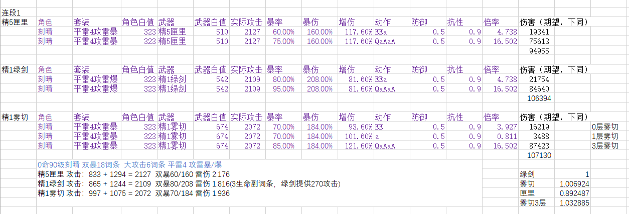 本帖可能会与很多人的之前游戏理解不合,我计算之前也没有预期到这种结果,在我之前印象中,雾切应该比绿剑强2%~5%左右,绿剑比匣里强10%左右。计算后将数据准确化,不作为抽卡建议。(之前算错了,现在计算完全符合之前印象)