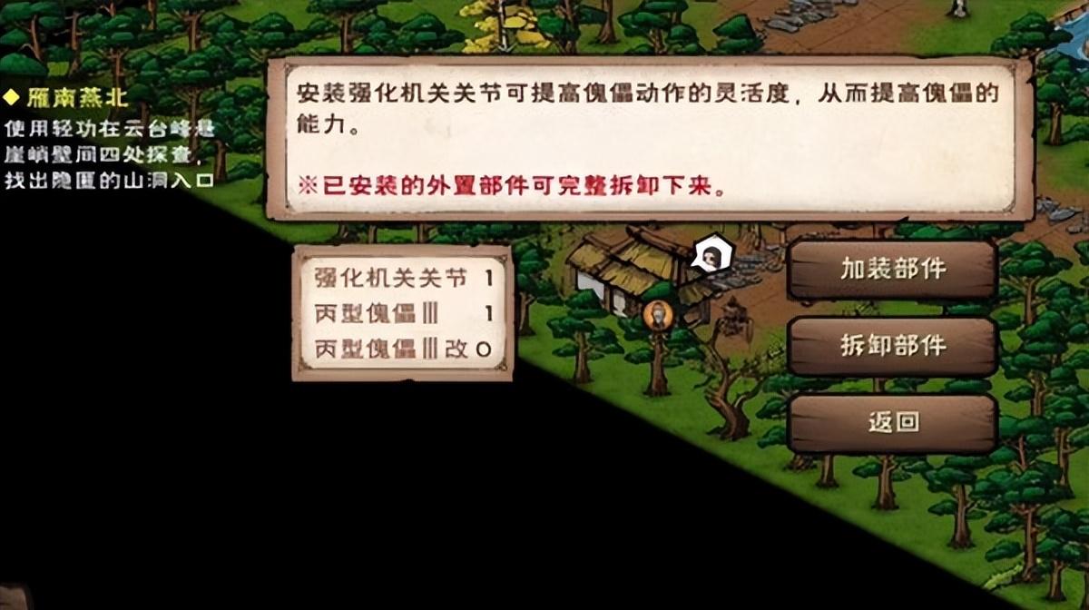 3.制作强化机关关节,需要玩家拥有如下材料:偶人构件×1、雪银×80、黑铁×120。同时还需要玩家拥有至少150的墨学等级。