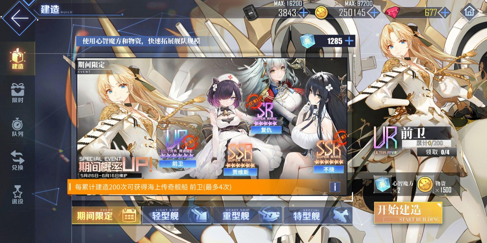 先说具体的出货率体感,金皮舰娘很容易出,这次的新紫皮舰娘只有一位,所以非常好毕业,直接抽到满破都没问题,贾维斯不建造获取也没事,毕竟能兑换的,所以不挠出货率很漂亮,但是UR彩皮前卫,这个出货率真的是太感人了,硬吃保底的玩家不少,这个真的体感很真实。