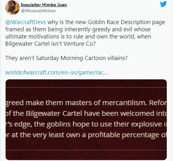兽人页面虽然提到萨尔和他领导的扩张过程,但对于现任领导层的描述是“有待确定”。被遗忘者页面删除了背叛的女王希尔瓦娜斯的所有描述,并将幽暗城列为首都。而地精被描述为具有破坏性的自大狂,试图接管世界,这让他们看起来更像恶棍而不是勇士。这些内容都被网友指责有种族偏见。
