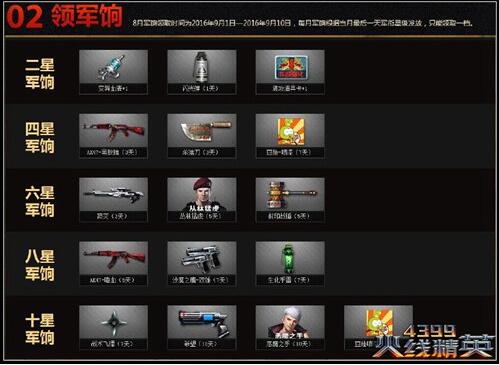 1、每周至少登录游戏1次,并且当天在线战斗1小时,即可在本页面进行一次军衔星级晋升,最高可晋升至10星。