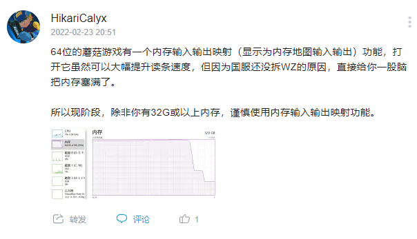根据B站up主光卡@HikariCalyx 反馈,开启内存地图输入输出以后,内存将会被占满。