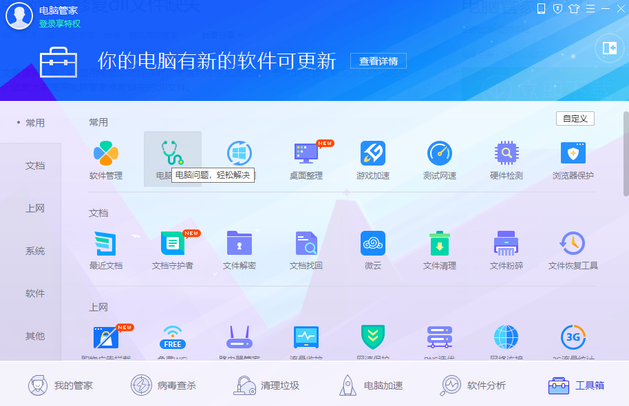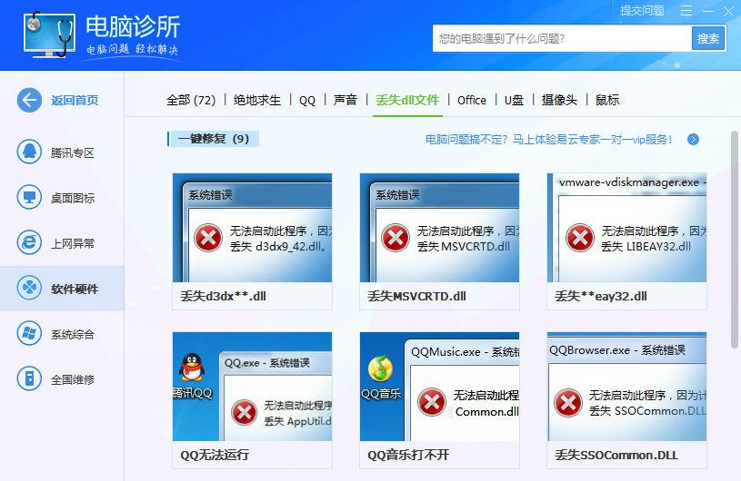 会有一些解决方案,也可以使用一些软件进行安装修复,例如Dll专修工具、QQ电脑管家等,这里使用QQ电脑管家来给大家演示一下。