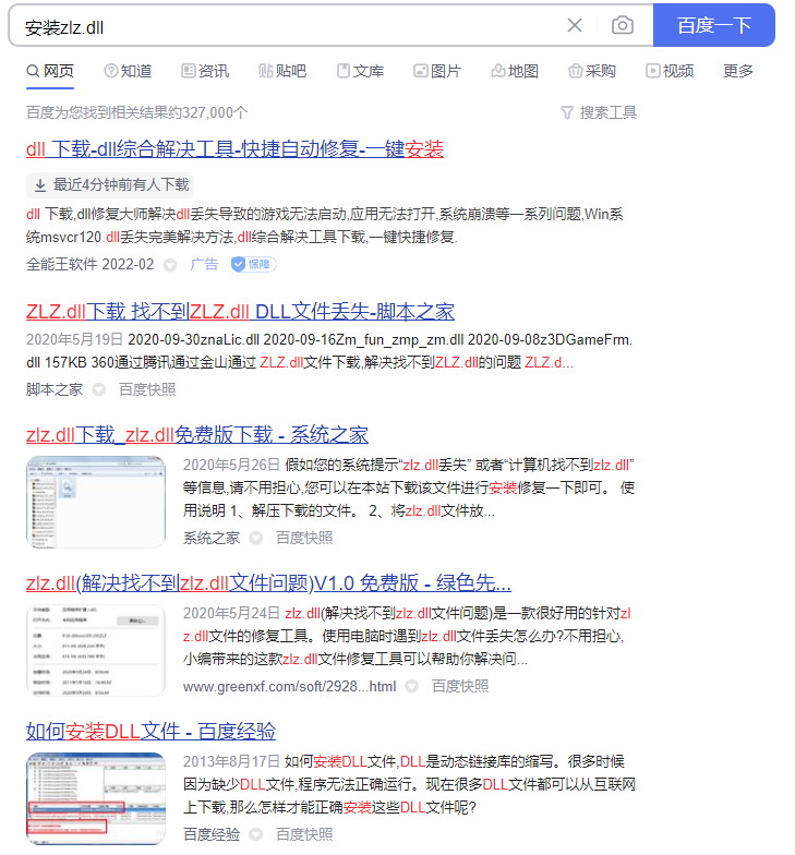 这个主要是和电脑环境有关,缺什么dll建议通过百度搜索进行下载安装,以上面的ZLZ.dll为例。