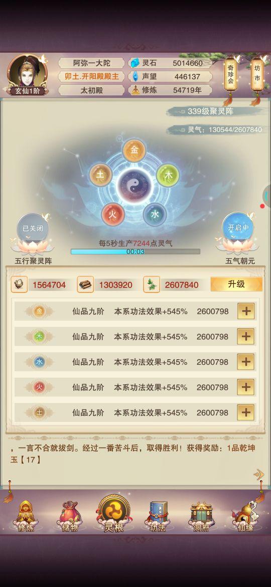 十星门派已经进完了,聚灵阵已经339,还在升级秘法中,升完攻防应该可以加5万左右攻防