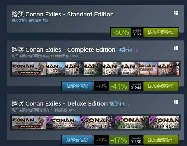 《流放者柯南》免费玩活动目前还有3天时间,5月26日之前游戏本体5折特惠,售价64元。