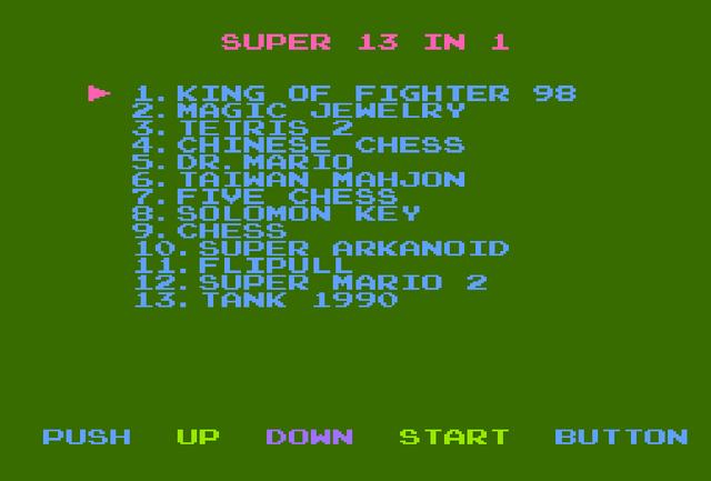 收拾抽屉的时候准备给卡条来一次大清理,都是从朋友那儿借来的卡带,喜欢把卡壳儿掰了留条你懂得,所以基本试试才知道是什么游戏,随便拿一张往上这么一插靠,这不就是再普通的一13合一嘛,基本上都是辣鸡烂大街的货,随便玩一个吧,我喜欢倒序开始,那就玩最后那个,这不玩不要紧,一玩就是差点惊掉下巴,这是什么鬼?