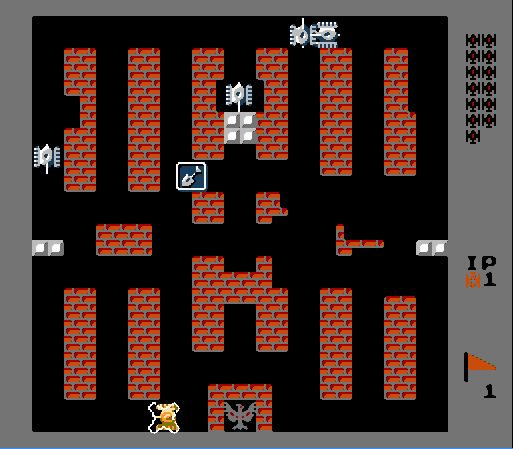 当敌方拾取五角星之后,所有的地方坦克都获得了穿甲能力!是所有!注意看中间和右边的铁块,被瞬间打穿了!这下游戏性得到保障了,可以好好玩玩了,烟山对你说好好玩?不存在的!既然这样,干脆就把敌人AI再调高几倍,让你爽个够!