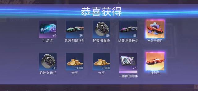 关于爆率这块大家完全可以放宽心,爆率确实感人,神剑号的盲盒机也是如此。运气好的甚至可以白嫖。礼品券完成任务可以领取上百抽,抽卡体验平民玩家也是可以拉满的。抽到车之后慢慢养就ok了,游戏中不存在逼氪的机制,充钱更多是加速赛车养成。