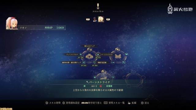 本作除了可以获得经验值提高等级之外,还可以使用 SP 点数学习技能。SP 除了能通过战斗胜利获得之外,还可以通过完成支线任务等积累点数。