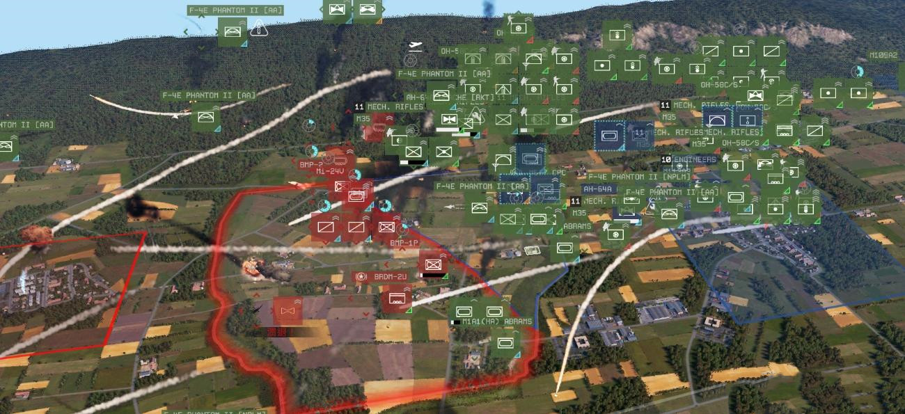 游戏的玩法大体上就是“战争游戏:红龙”和“钢铁之师”的融合,战斗以RTS形式进行,玩家可以在开局根据自己的点数来配置不同类型的部队,用战斗群的方式来进行操控。游戏的建模相当细致,军团构成中的每一个士兵都可以表现得很清楚,包括武器装备外观等等,可以说是非常细致,种类也非常丰富,陆海空三军齐全,达到数十种之多,玩家可以巧妙得利用兵种配合,和敌人斗智斗勇。
