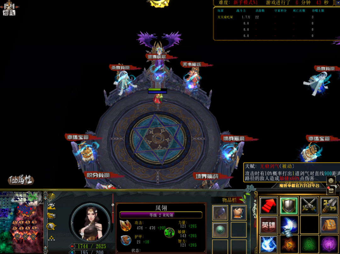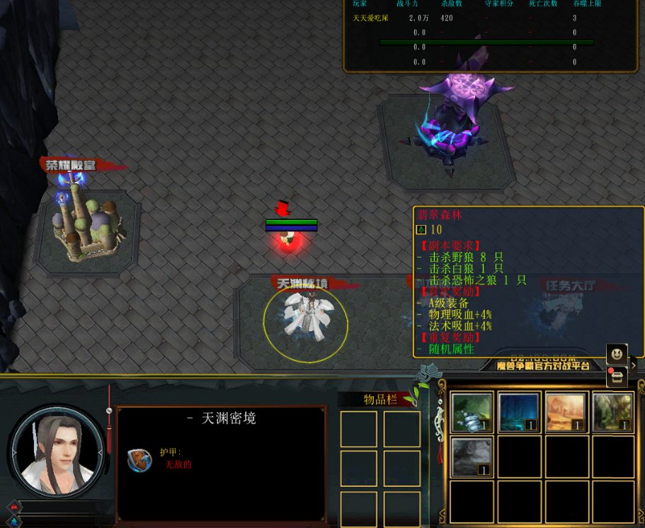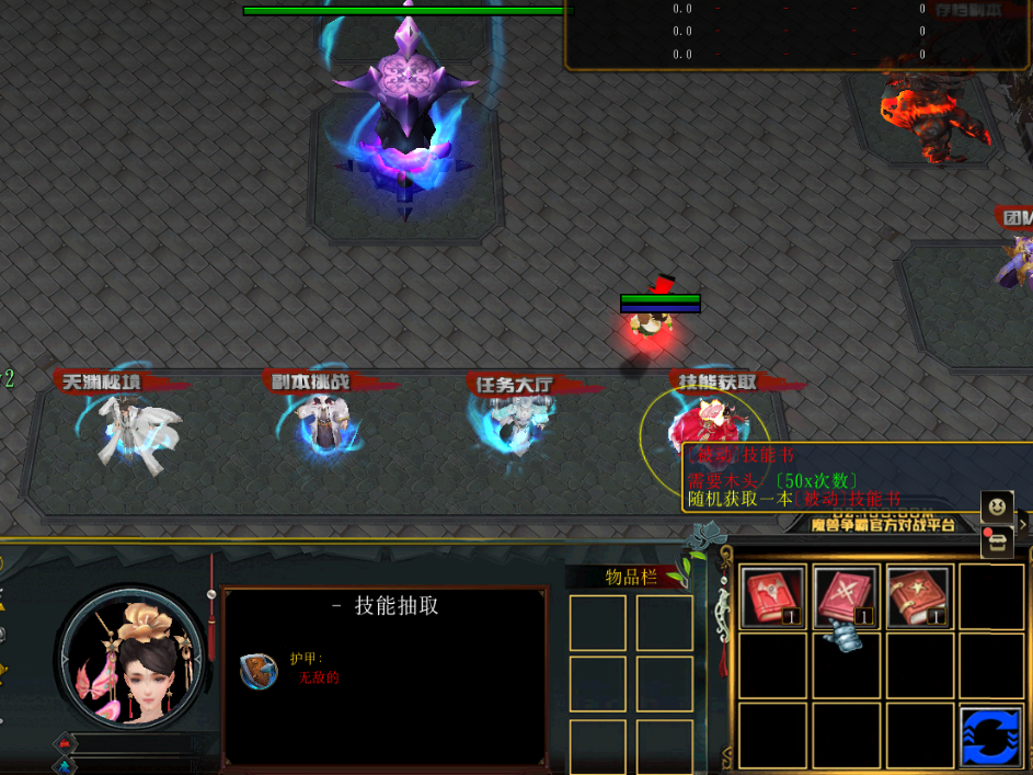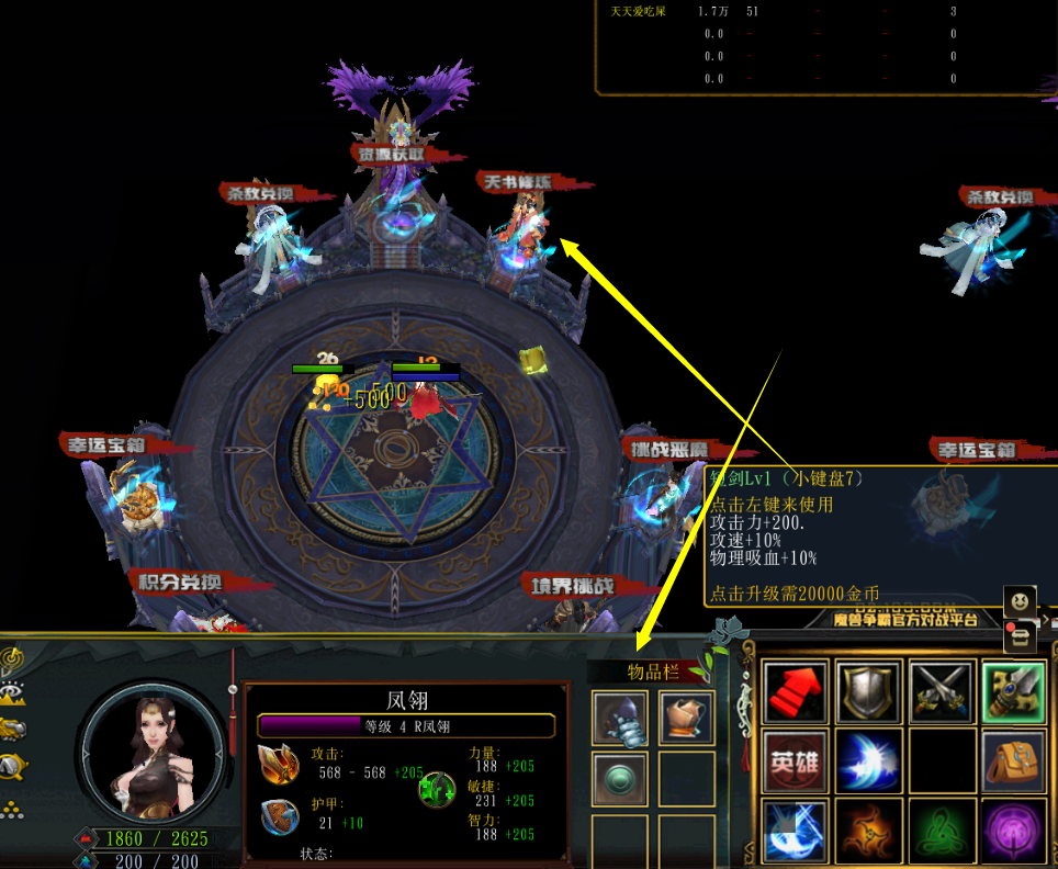 直到剑甲装备需要进入副本才能提升时,我们的打装之旅马上就要展开了。先来看看主城下方的一排NPC,有天渊秘境。副本挑战,任务大厅和技能获取等。