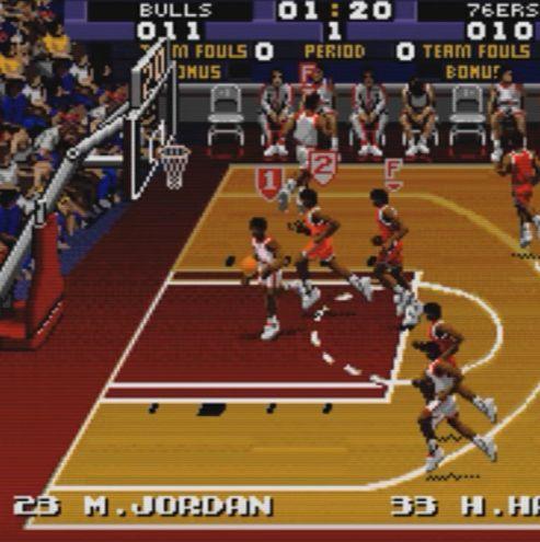 《NBA Live 96》,那个年代的乔丹仍旧看不清长什么样子。