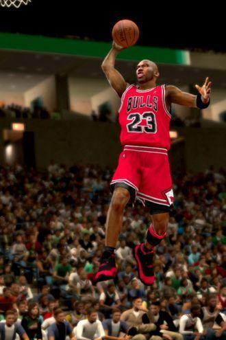 《NBA 2K11》,在用2K9和2K10完成对LIVE的收割后,11代中2K正式打起了乔丹这面大旗。在这一代中有著名的乔丹模式,同时也有堪称惊艳官方的乔丹形象。前面两代游戏中虽然也有玩家做出了相当逼真的乔丹,但毕竟11代是官方首推。
