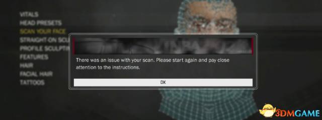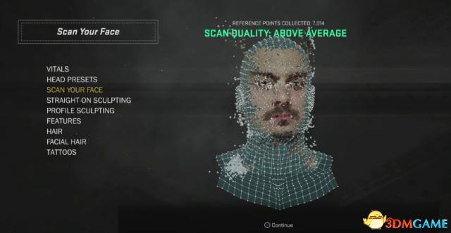 当你重复多次扫描上传,游戏中有比较完整的数据以后,系统会提示你”SCAN QUALITY: ABOVE AVERAGE",这就说明你和你的基友成功啦!扫描出了高质量的面部细节。