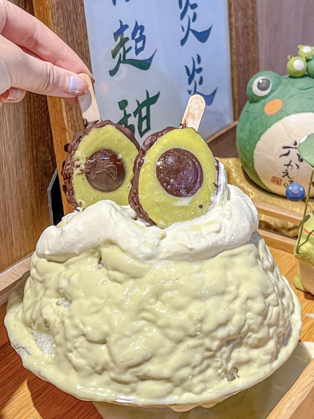 谁能拒绝一碗“漫画刨冰”呢?胖乎乎的嫩绿外表插着牛油果小冰棍,内料丰富扎实,越吃越有惊喜~