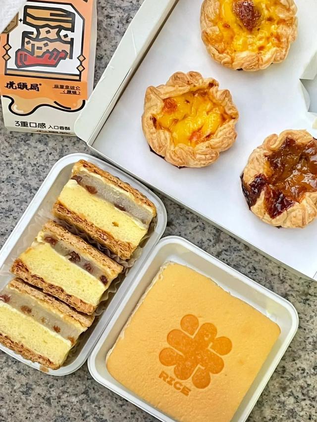 是谁被馋到了我不说~咸甜口感的奶油米蛋糕、麻薯夹心的酥皮蛋糕、玉米咸蛋黄味的神仙蛋挞……糕点星人宣布,虎头局就是我的神!