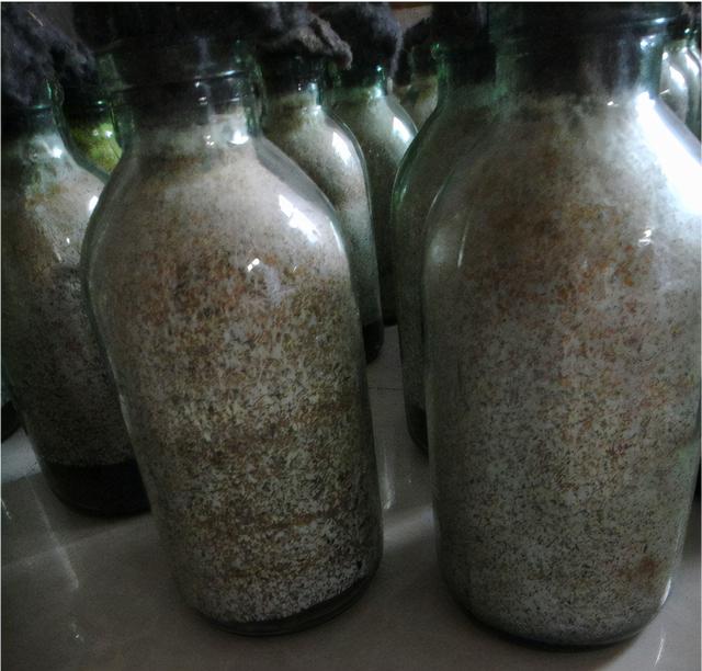 在木屑里养着的香菇纯菌种
