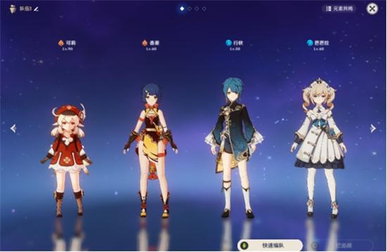这套阵容就比上面那个阵容要稍微强上不少,这个阵容差不多稍微肝一点点就能获得了,虽然说芭芭拉被不少玩家吐槽是内鬼,但是只要不少打冰属性的BOSS还是非常的好用的,省下了很多的甜甜鸡呢~
