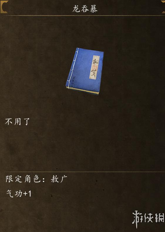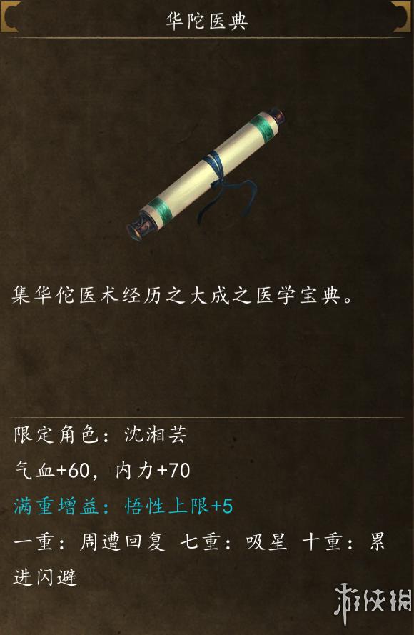 此物品可装备,但是没有任何效果。具体来历不明,用处不明。根据和书生的对话,推测是书生丹青跟唐伯虎有剧情。