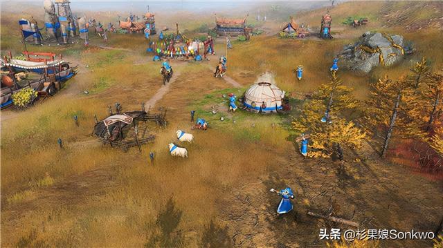 第三种则是整个玩法跟白板科技树差距极大的民族,例如蒙古人。《帝国时代4》中的蒙古人彻底成了游牧民:不能造城墙、不能采石头(但所有建筑都不需要石头)、建筑可以打包带走……甚至连农田都变成了会生产绵羊的牧场。这类民族会给玩家带来相当强烈的新鲜感,但代价则是必须从0开始学习玩法。