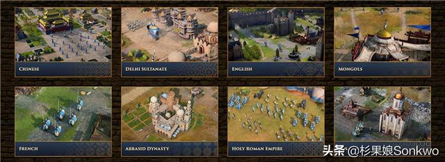 第一种是兵表、科技树和机制与白板差距不大的民族,例如英格兰人和法兰西人。这类民族的特殊属性大多是很直观的 buff,特殊单位的泛用性也比较广(插个嘴,每个民族都有至少2个随时代解锁的特殊单位),适合新手或者不想学习复杂运营的玩家操作。