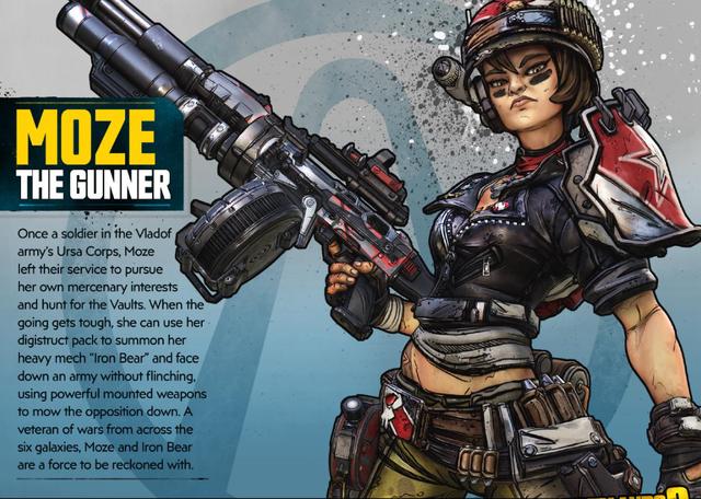 Moze非常适合新手入门使用,强烈推荐新手选择。Moze本身没有很强的战斗力,但是当她跳进她的机器熊,你会发现一个新世界。
