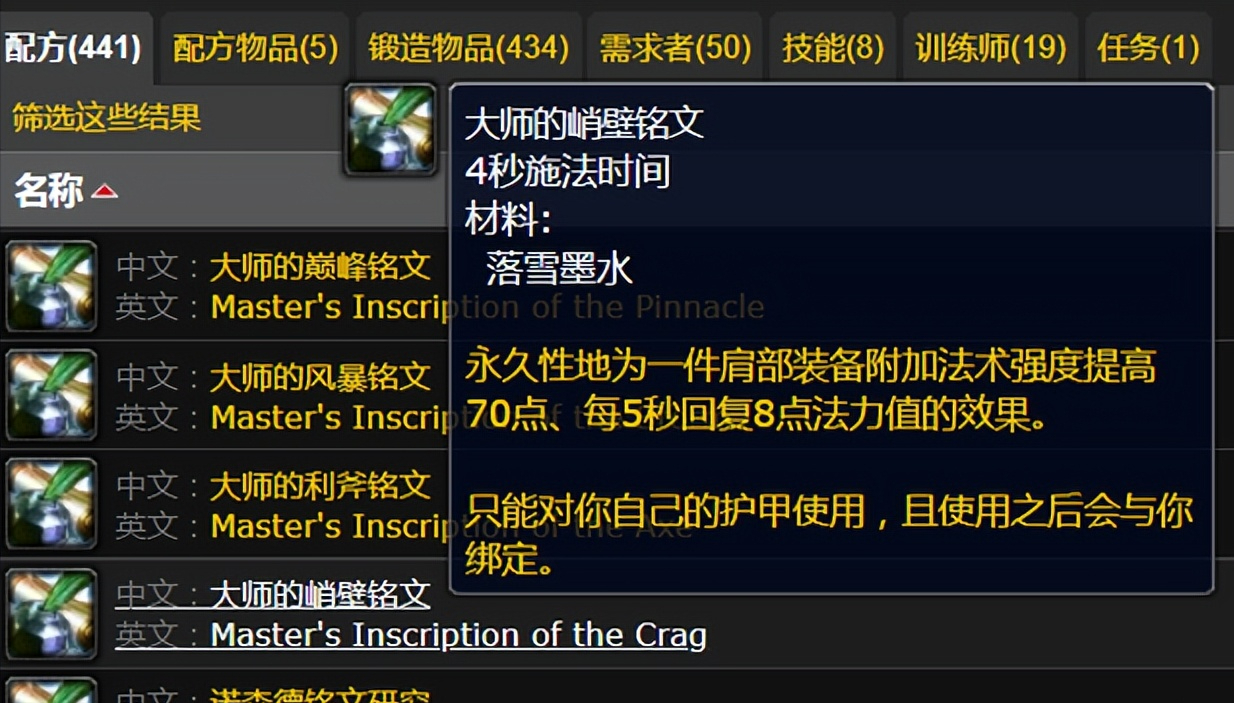 但如果你学习了新的铭文专业技能,并且只玩一个号的情况下,霍德尔之子的声望就可以忽视了,因为铭文专业本身就提供肩膀附魔,并且强度要远远高于获霍迪尔之子声望提供的肩膀附魔。