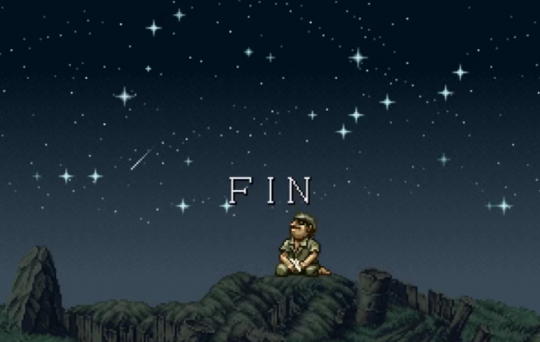 马尔克与塔马在玩家的操控下披荆斩棘,最终成功打败了摩登。大战结束后,一名地方小兵用自己的信折叠成纸飞机后,随手一扔,纸飞机飞过这个满目疮痍的世界,每个人都在庆祝着战争结束,最后纸飞机撞上了从废墟中钻出来的摩登。摩登用尽了自己所崇尚的武力,却还是被主人公的那把小手枪击败,最后瘫坐在地面看着繁星若有所思。据说如果是单人通关,还会看到更多战争后的残酷现象,颇有反对战争的意味,第一部也到此结束。
