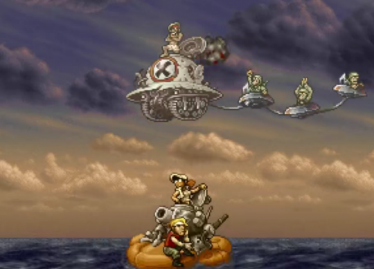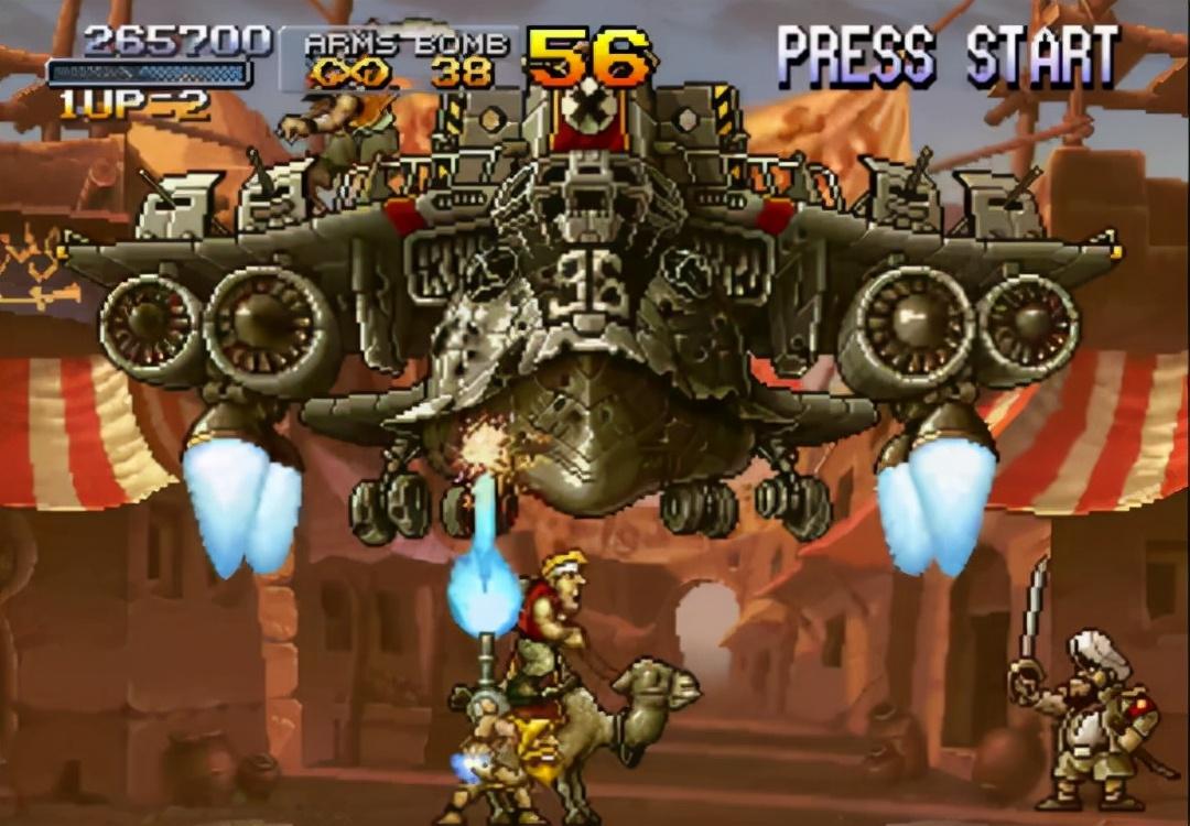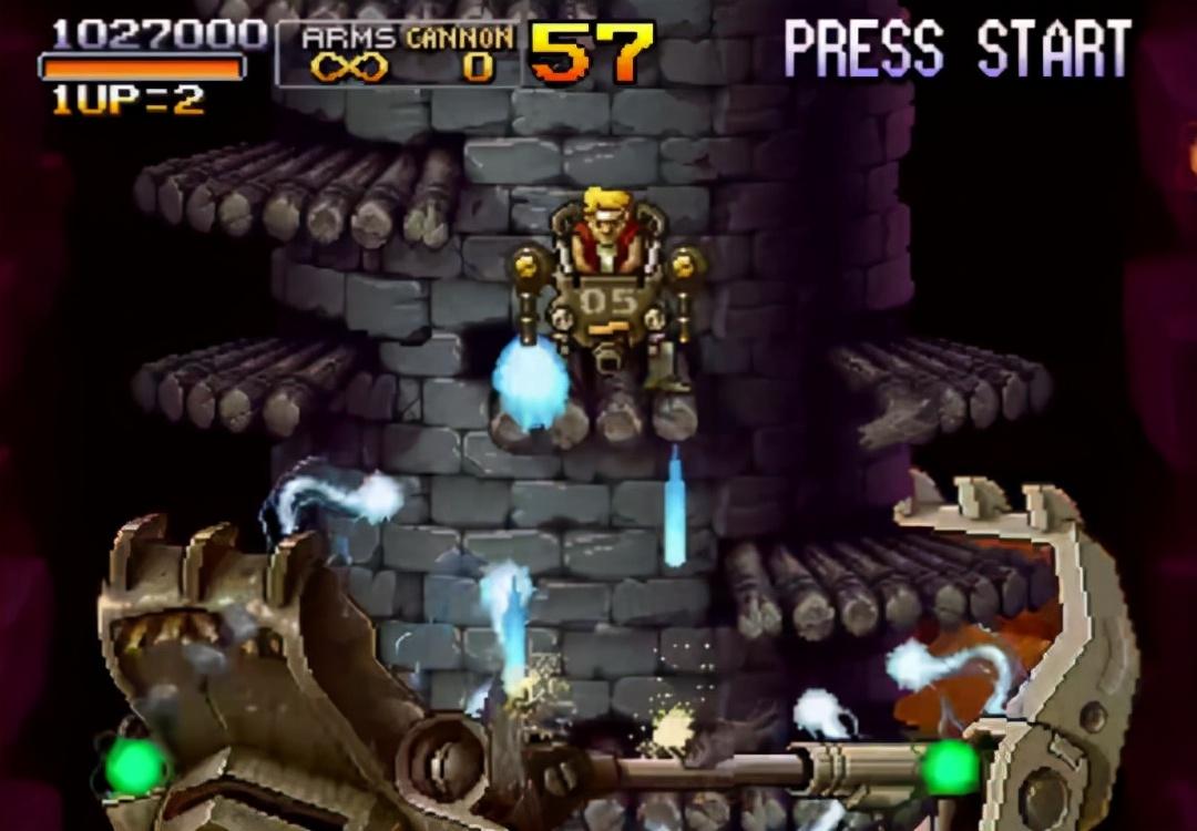距离上一个老游条不看剧情就开玩的游戏,应该是手机上常备的音游了,但在啥都不懂那会,基本上没有一个游戏是需要看剧情玩的。什么街霸、拳皇,只要学会搓招,就能在街机厅里干掉只会乱按的小屁孩,还能成为厅里最靓的仔。一次与学长的拳王对决中老游条还曾经试过一穿三,但在被高年级大哥现实里的“一穿三(三拳)”后,老游条就开始摸索其他类型游戏,什么三国志、恐龙快打也是随手就来,但最好玩的,还得数《合金弹头Metal Slug》。