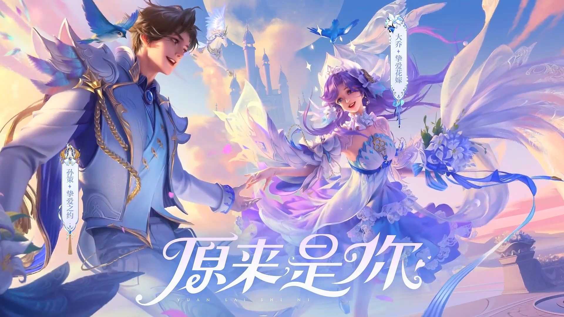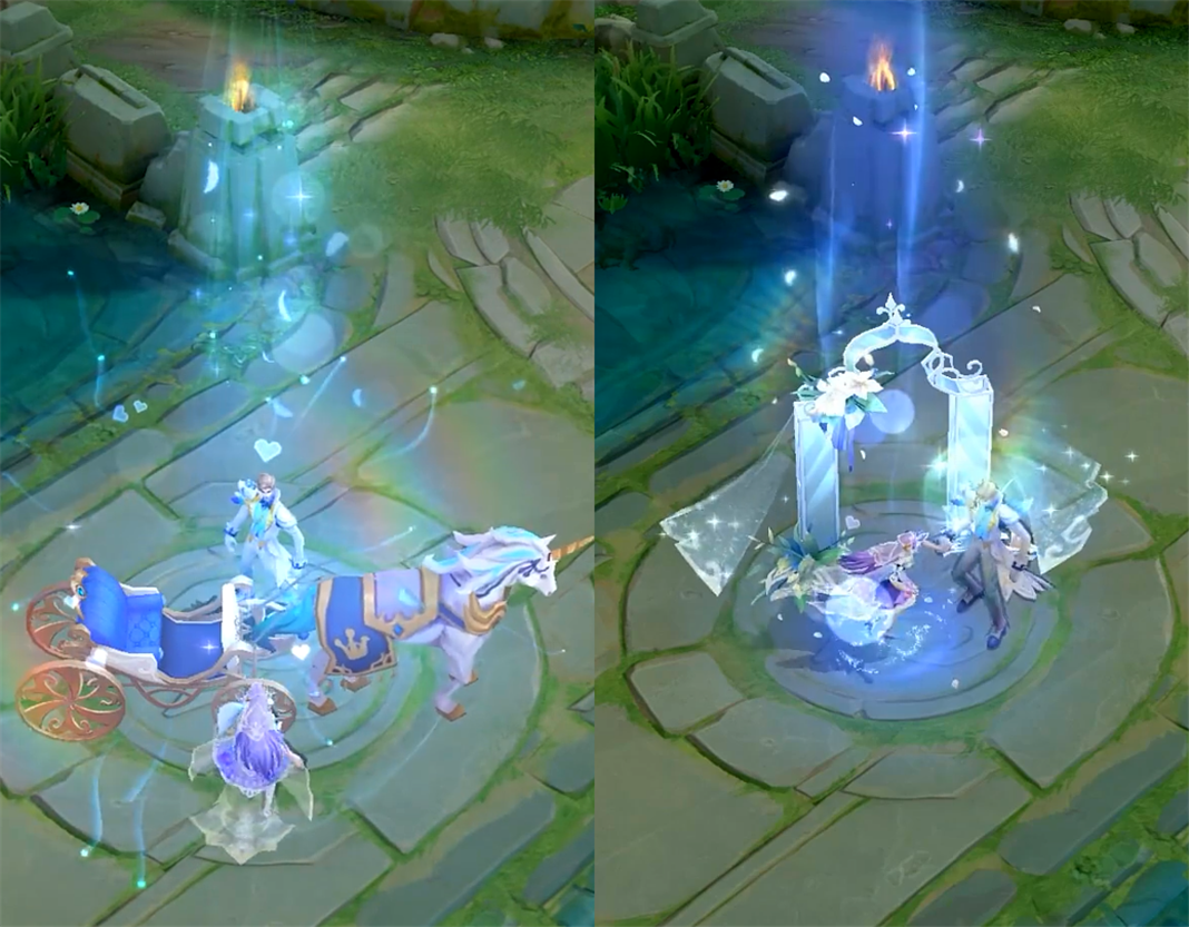 技能展示:特效融入了婚纱、捧花、青鸟、城堡等元素。