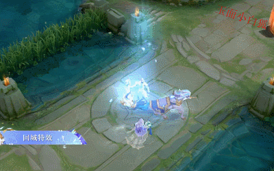 回城特效:孙策招来独角兽,大乔变出马车,二人坐上马车飞向空中。