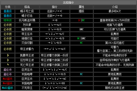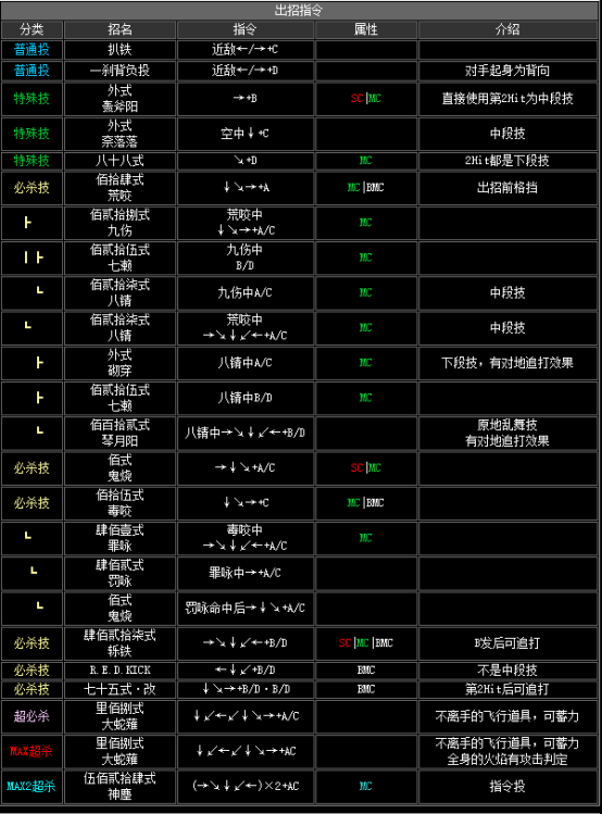 拳皇2002冰蓝游戏攻略(拳皇2002全人物出招表)