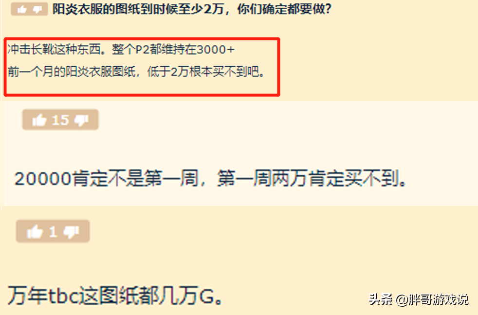 或许是因为阳炎之袍的属性实在过于优秀,甚至可以穿到WLK版本的P2阶段,因此最近一段时间,玩家们也在预测阳炎之袍图纸的价格,甚至认为2W金币入手都不亏。不过胖哥还是建议普通玩家不要在P5阶段初期入手这件装备。