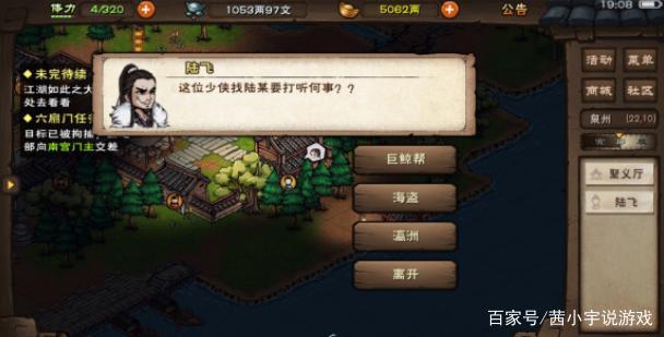 八卦门和铸剑山庄作为最后开启的两个小势力,实际上本身的作用也就没有前面几个大,所以我们迟一点开启也是无所谓的。八卦门可以让玩家获得一把伏羲刀以及八卦掌法,至于铸剑山庄,收益是比较低的,所以放在最后开启。