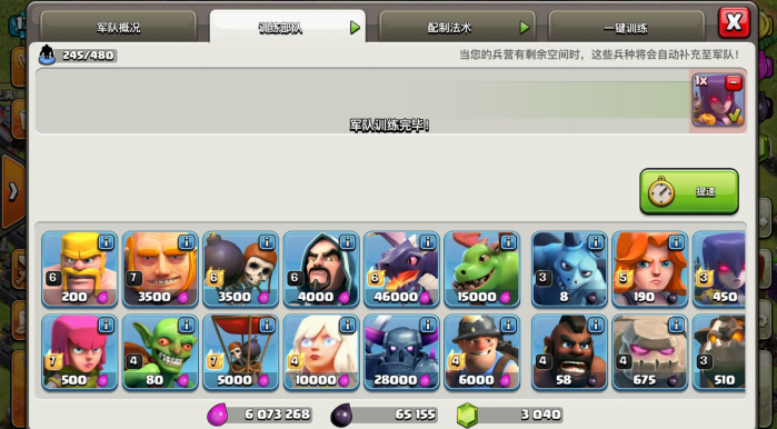 一宝石秒兵指的是可以仅利用一宝石来让兵营内瞬间造满我们想要建造的兵,当时很多玩家都喜欢秒女巫或者飞龙,然后捐献给部落成员,赚取50%的费用差价。不过这个刷兵的方法有一个缺陷,那就是一次性只能刷一种类型的士兵,这也导致了当时很容易看见敌方掠夺战时放出的全是女武神或者全是飞龙之类的。