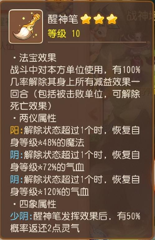 减治疗版本开始后,死亡倒地的虚弱惩罚,让玩家很难迅速恢复好状态。持续3回合、50%的减治疗状态,醒神笔是否可以解呢?必须可以。