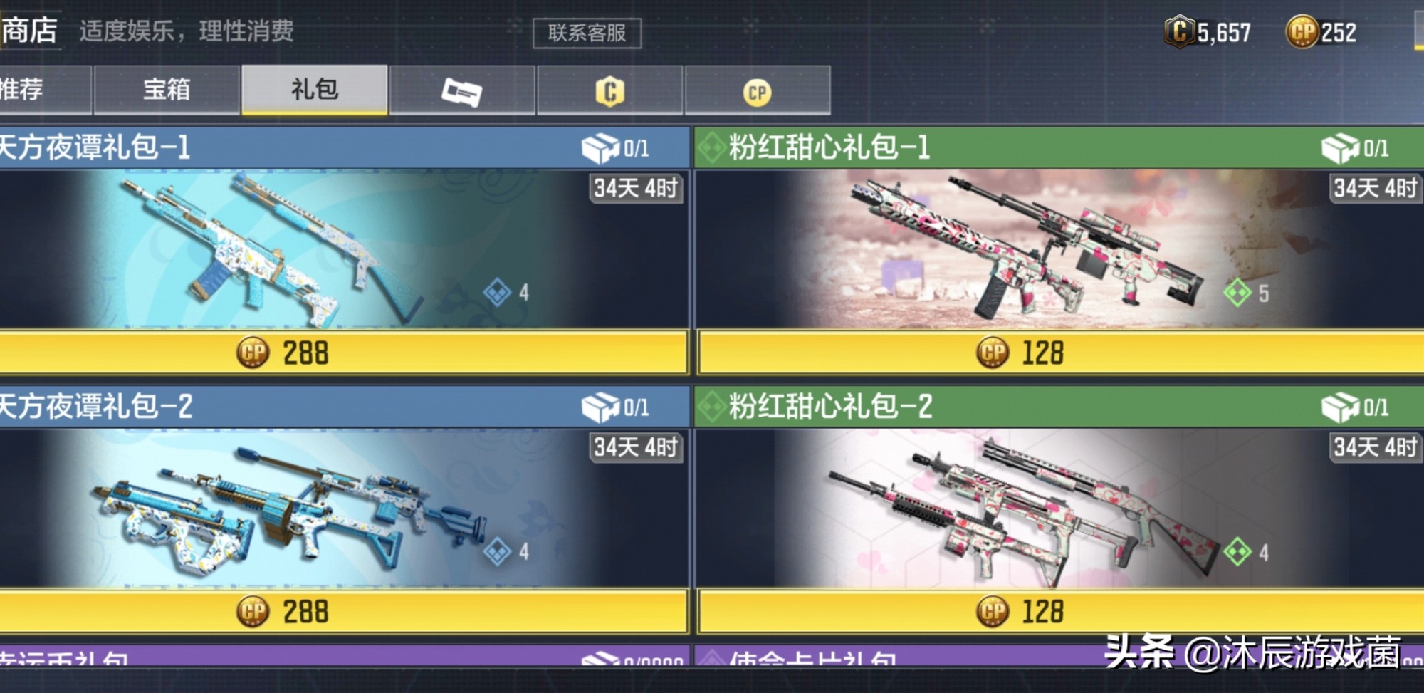 包括天方夜谭两款礼包和粉红甜心两款礼包,大多都不是主流和热门枪械的皮肤,所以关注度不高,不过价格并不贵,用G37和M4的小伙伴可以选择性入手。