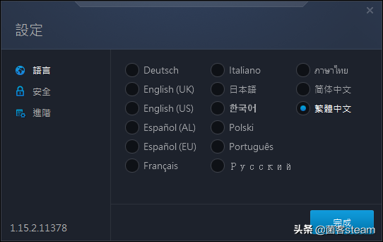 重启客户端会发现是英文的,点击齿轮图标再点击齿轮图标,选择繁体中文,确定即可!