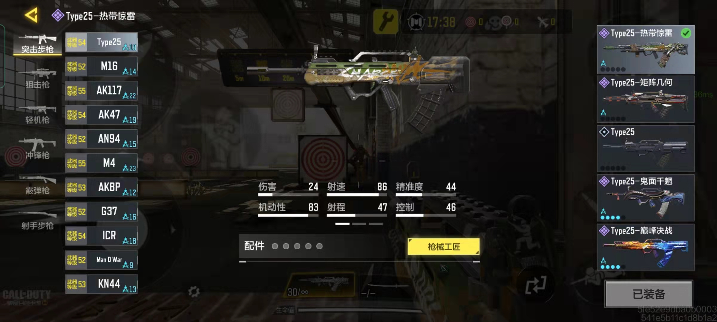 type25普通30发弹夹射速到2.秒,换弹速度2.5秒,射速在突击步枪中最高。优秀的射速,给Type25带来的影响就是不稳定的弹道。