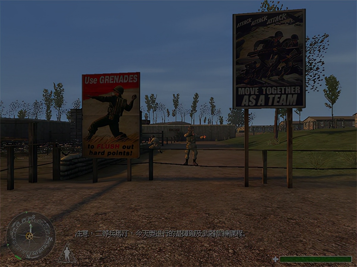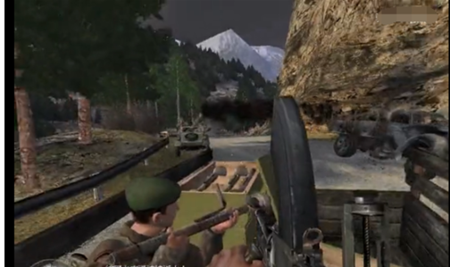 地堡前面有个无线通讯设备,走近它按G键,就要开始作战了。这时的天空会有飞机飞过,你的战友会和你会和。跑到前面的墙下躲着,屋子里的敌人会朝你开枪。