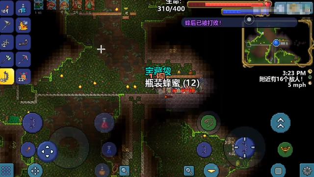 在地下森林地区探索的时候,你会发现会有蜜蜂这样的怪物,特别小,只有一格体积,攻击力也不高血量也很少,但是因为太小,你往往会将它忽略。你如果悄悄的跟着他走,就可以发现蜂巢,进入蜂巢你会发现在蜂巢在中央有一个被蜂蜜包裹的蜂后,击碎蜂蜜,蜂后就会出现,即可开始挑战。