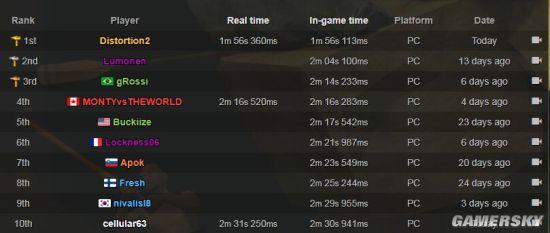 Distortion2在速通过程中展现了极其惊人的反应速度和判断力,整个速通过程仅用时1分56秒,这也是第一次有玩家在2分钟以内完成速通挑战。