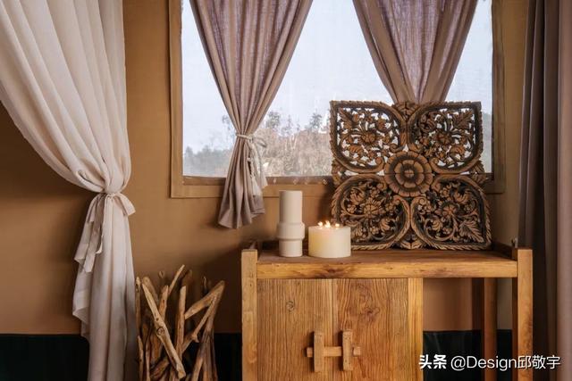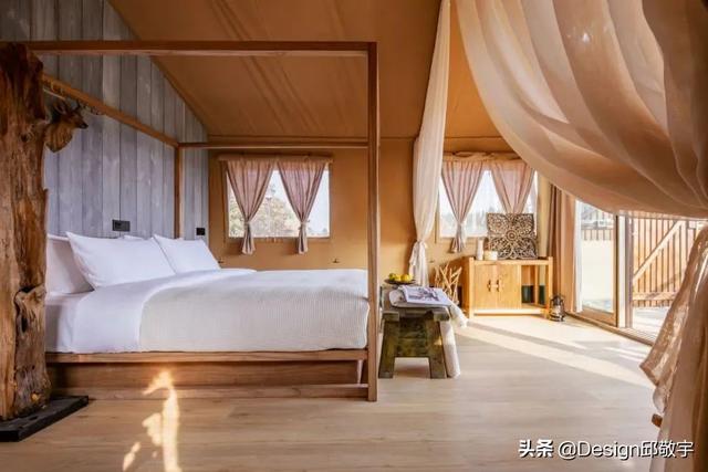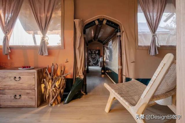 在帐篷屋内,还缀以非洲风情的挂毯、图腾等,呈现出一种野与奢的冲突感。