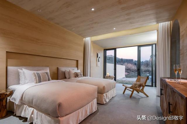 选址独到:整个建筑被灌木及湿地生态包围,坐拥无垠的开放式山野,散发着自然和原始气息,身处其中,宛若置身非洲浩瀚荒野。