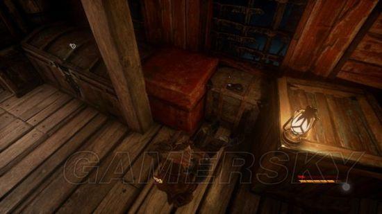 step1.首先去到初始地点右侧以蹲伏穿过倒塌的木柜进入到另一侧房间。