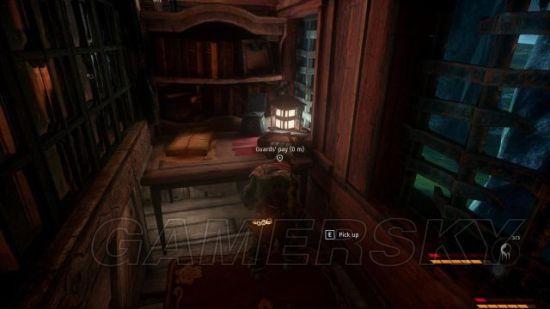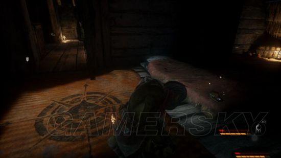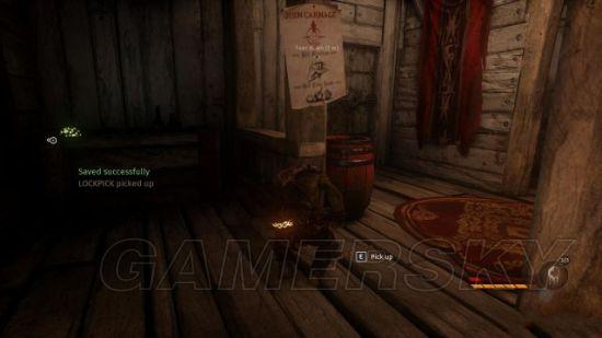 来到酒馆二层大房间的桌子拿到第二份守卫工资单,并在后方的木柱上撕掉一份通缉令(7/8)。