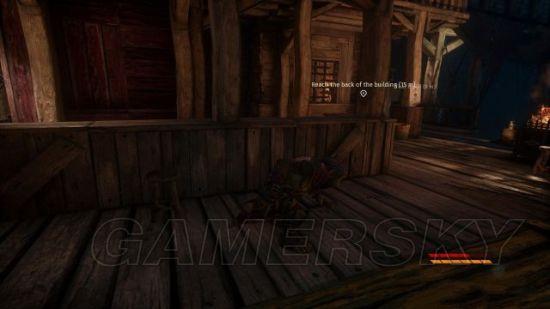 step6.前往至第一座有士兵驻守的建筑物的左侧,在门口处有一名守卫可以暗杀掉。