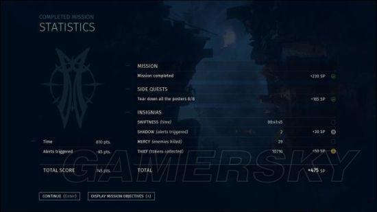 最高评分条件:①10分钟完成任务;②不触发任何警报;③不杀一人;④收集10个代币